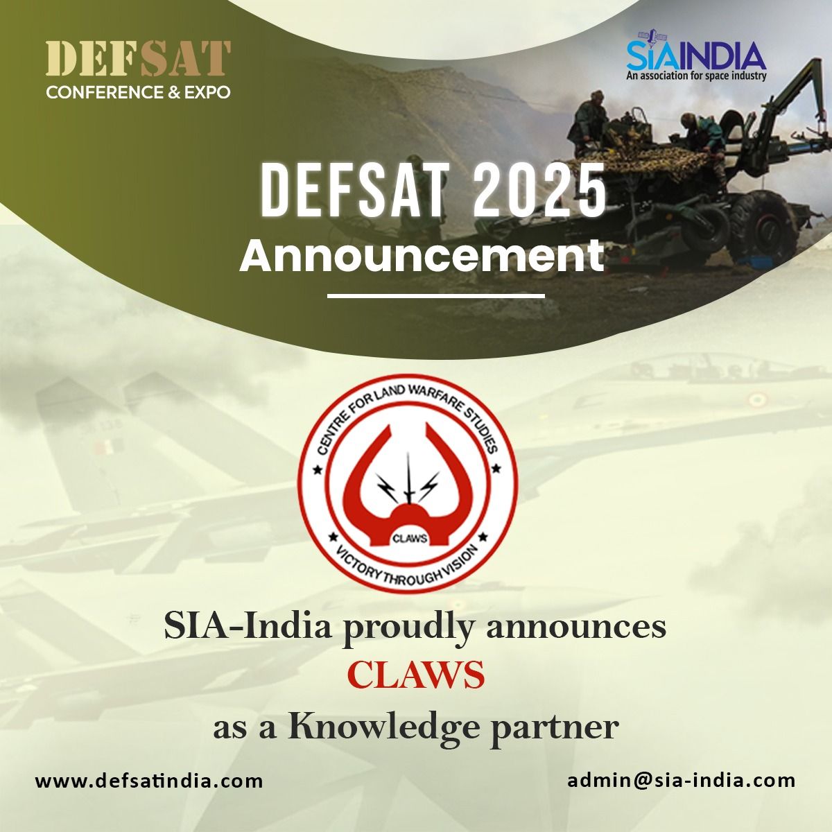 SIA-India proudly announces its partnership with the Centre For Land Warfare Studies (CLAWS) as a hashtag KnowledgePartner for the DefSAT Conference & Expo. Join us today as we explore cutting-edge advancements in defense space technologies, foster strategic discussions, and drive innovation to strengthen India's space and defense ecosystem. Be part of the conversation shaping the future of hashtag defensespace capabilities!