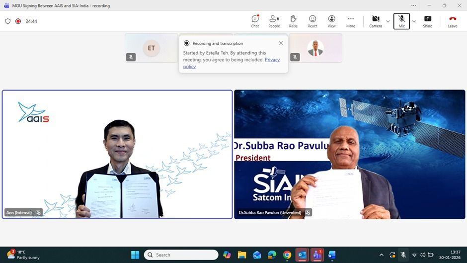 SIA-India has signed a Memorandum of Understanding (MoU) with the Association of Aerospace Industries (Singapore), marking a significant step towards deepening India–Singapore cooperation across the space and aerospace sectors. This partnership comes at a pivotal time as both countries seek to strengthen industry linkages, unlock new business opportunities, and foster collaboration across rapidly evolving space and aerospace value chains.