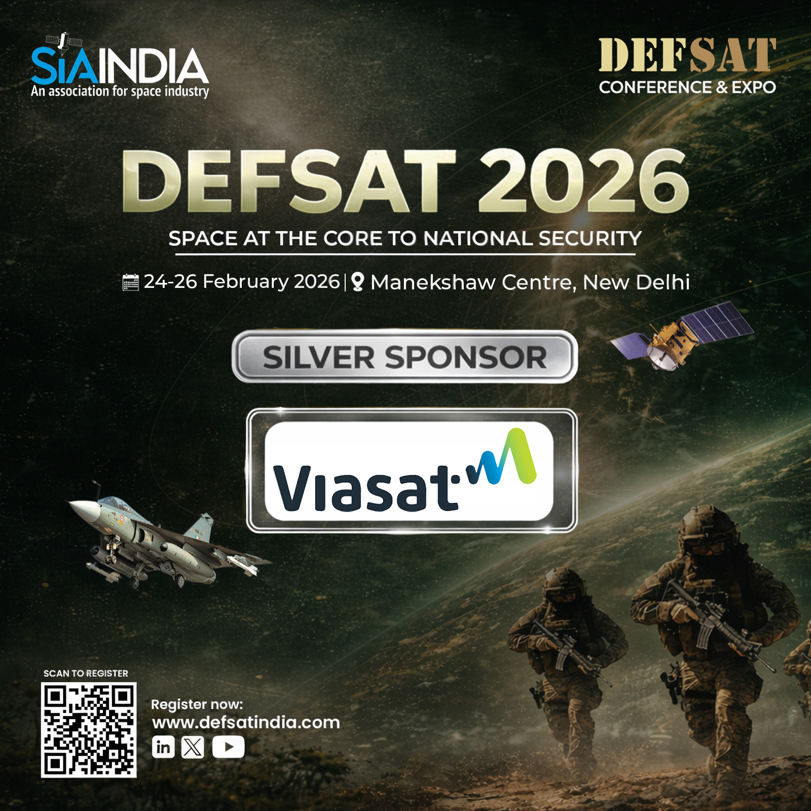 SIA-India is delighted to welcome Viasat as a Silver Partner for DEFSAT 2026. A global communications leader, Viasat is dedicated to connecting governments, businesses, and communities worldwide through advanced satellite and integrated network solutions. Leveraging a multi-orbit architecture that combines GEO, NGSO, and terrestrial technologies, Viasat delivers flexible, scalable, and resilient connectivity across land, air, and maritime domains.